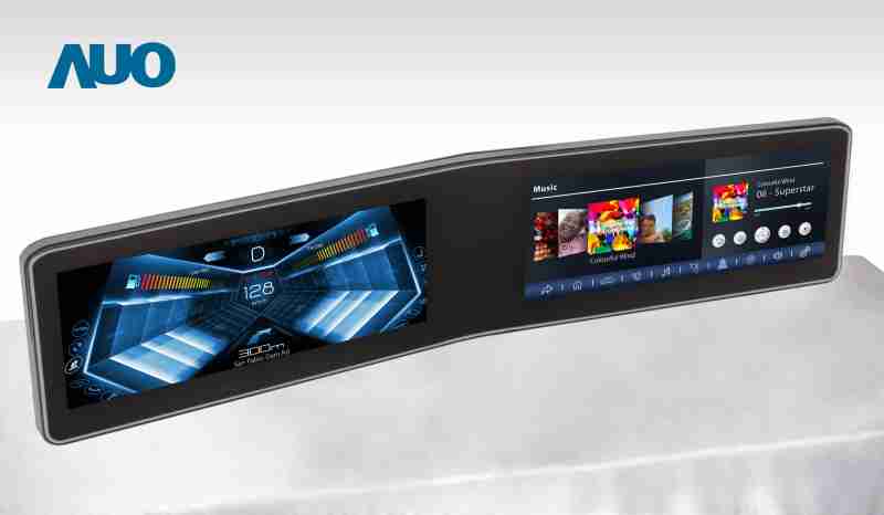 彩运网 V 型曲面驾驶舱显示器,,,采全贴合拼接仪表板及中控台显示屏 |
