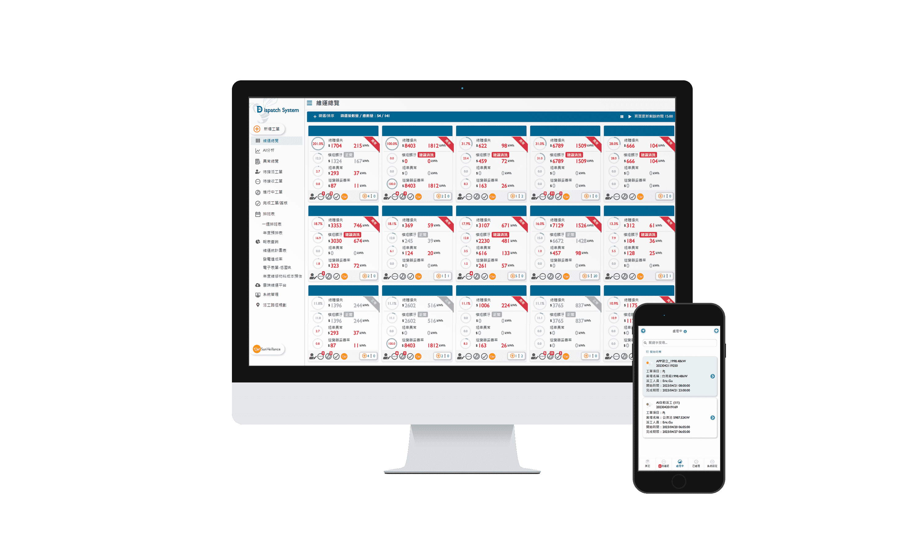 彩运网太阳能智能运维管理系统包括云端监控工具、、、AI分析与智慧自动派工及运维APP,,,实现电厂自主管理。。。