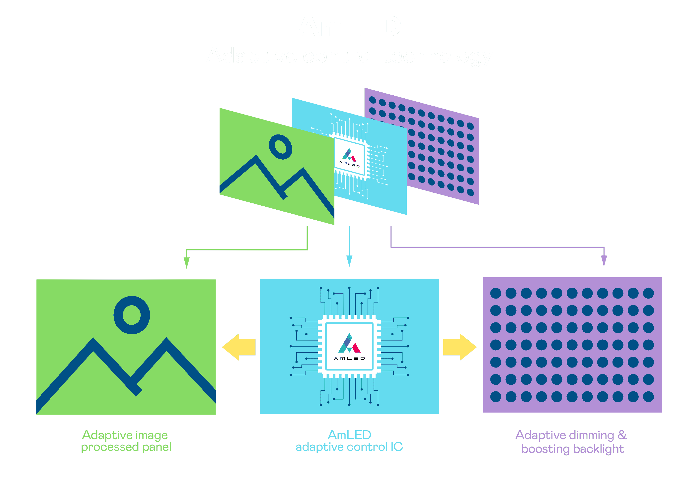 AmLED 具备更省电与低蓝光特性。。。。与一般的 LED 背光显示技术相比,,,由于 AmLED 常时处于局部调光状态,,,其功耗仅有前者的 50% 左右,,,同时 AmLED 还具备低蓝光特性,,,,满足长时间使用的护眼需求。。。。