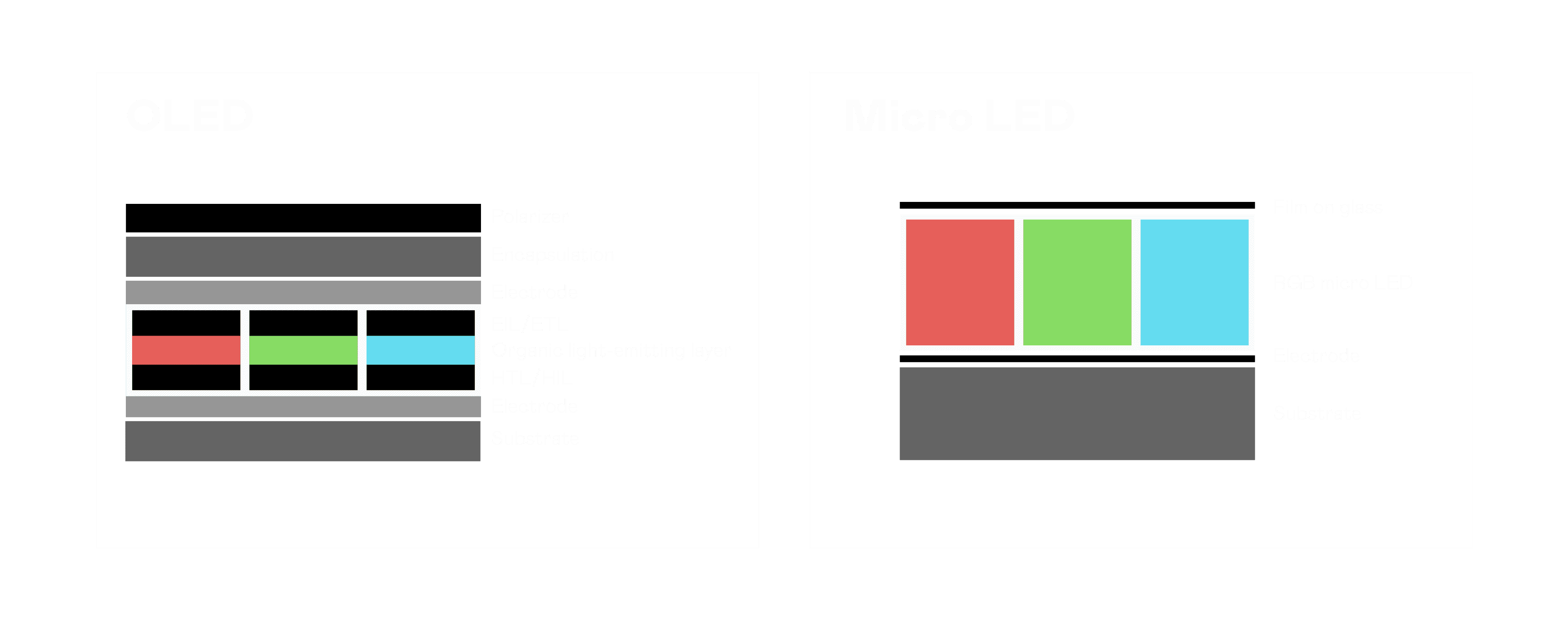 以 LED 做为显示画素,,,,可让 LED 的发光效率发挥到极致,,从而让显示器具备优异的亮度表现,,,,不论是在户外或室内,,,均具备出众的显示效果。。同时,,,与使用有机材料的 OLED 相比,,,LED 具备更稳定、、寿命更长的特性,,不仅不会有画面烙印问题,,而且更不容易出现故障、、、坏点。。。。